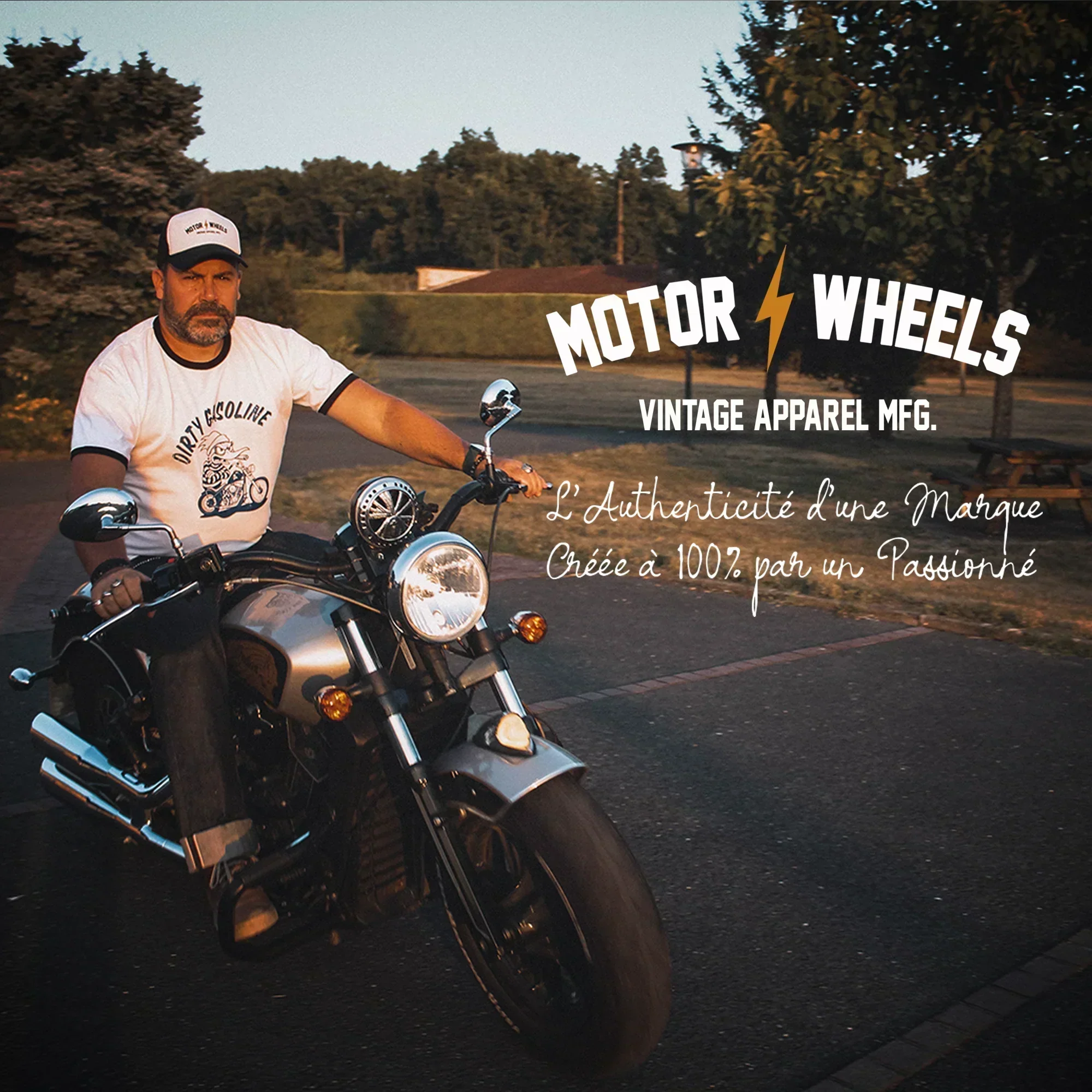 Aujourd’hui, MOTOR WHEELS CLOTHING, c’est encore une aventure solo. Mais c’est aussi une marque qui rassemble une vraie communauté. Si tu es motard, amateur de voitures anciennes, amateur de style vintage ou tout simplement en quête d’un lifestyle vrai et sans artifice, alors tu es au bon endroit.